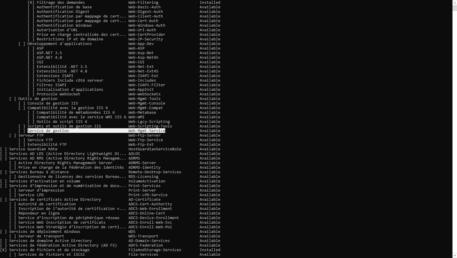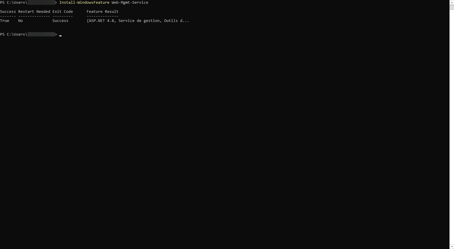 Pour commencer, sur le serveur que vous souhaitez administrateur à distance, il faut installer la fonctionnalité Service de gestion à distance (Web-Mgmt-Service) du rôle IIS.
