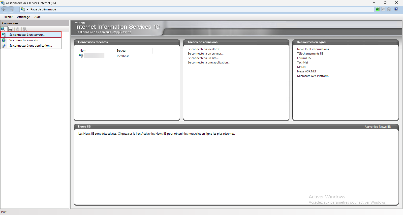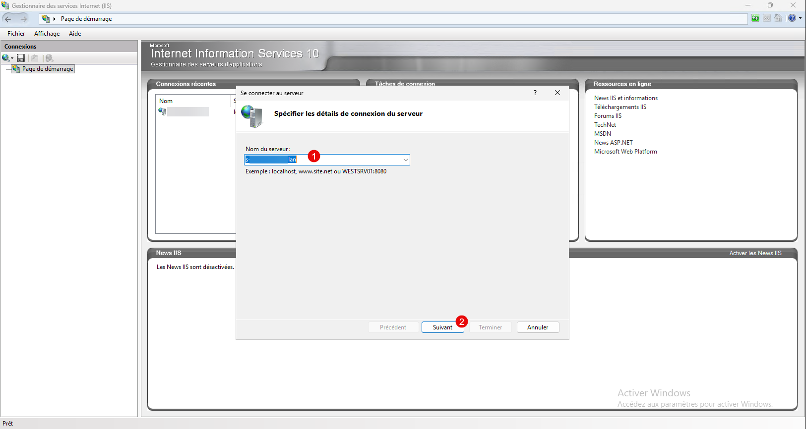 Testez la connexion depuis un serveur de management avec IIS Manager.