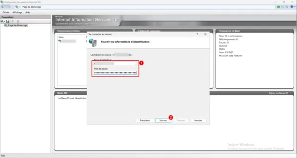 Saisir les informations de connexion au serveur distant (compte du domaine ou local) puis cliquer sur Suivant.
