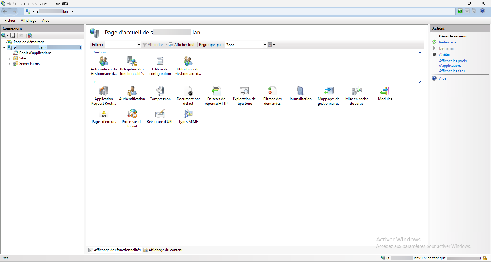 Sur le serveur de management, lancer la console : Gestionnaire des services Internet (IIS).