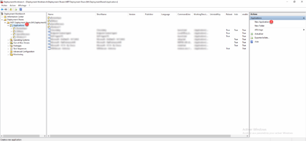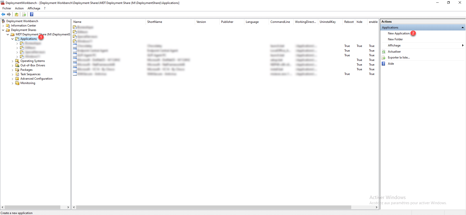 Depuis la console MDT, aller sur le dossier Applications 1 puis cliquer sur New Application 2.