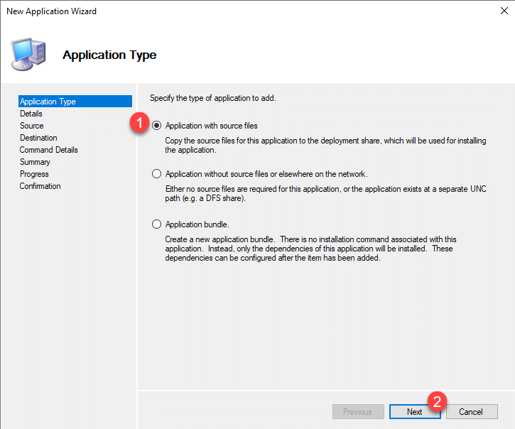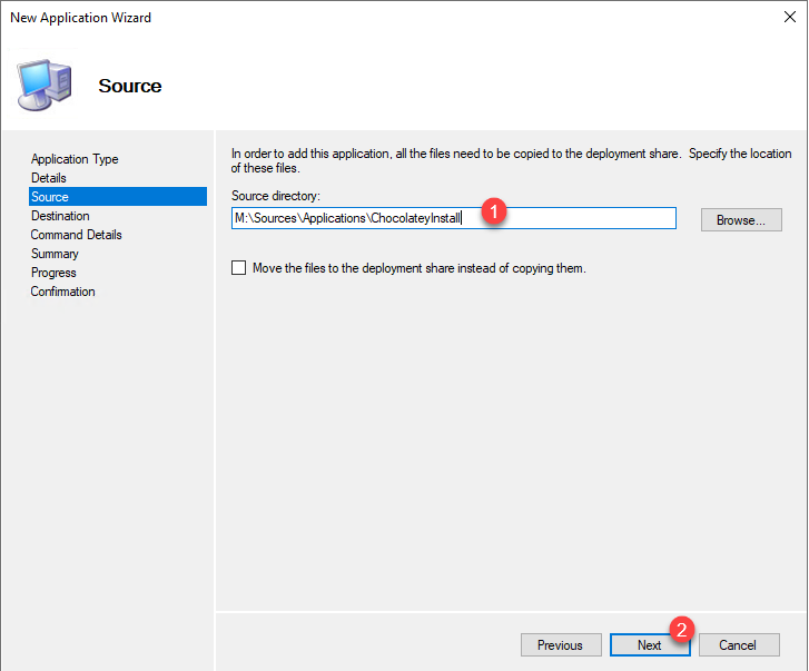 Nommer l’application 1, ce nom sera visible dans la console MDT et dans l’assistant de déploiement de Windows puis cliquer sur Next 2.
