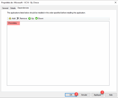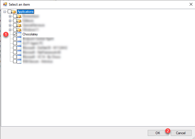 Sélectionner l’application 1 qui installe Chocolatey et cliquer sur OK 2.