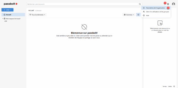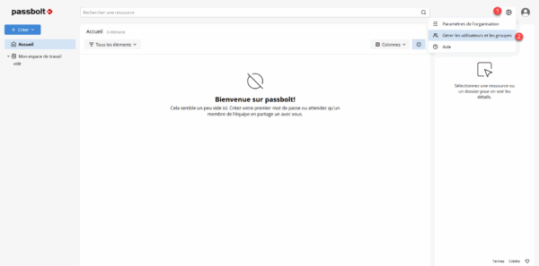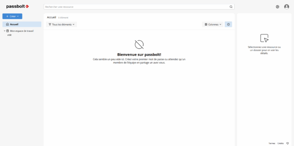 Le compte est créé et vous êtes maintenant connecté à votre coffre-fort de mot de passe Passbolt.
