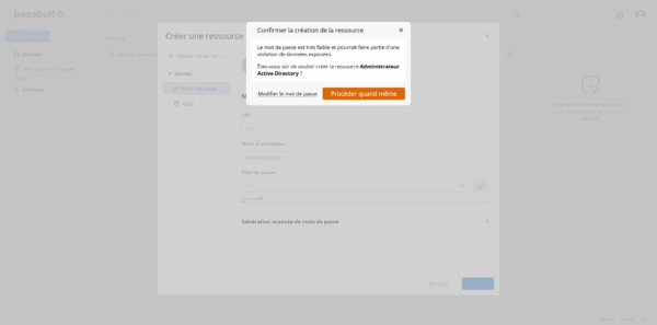 Le mot de passe est ajouté dans Passbolt.