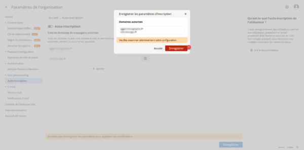 L’Auto-inscription dans Passbolt va permettre aux utilisateurs de votre entreprise de créer leur compte automatiquement dans le logiciel en se basant sur le ou les domaines de messagerie qui auront été autorisé.