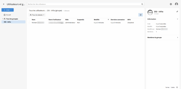 Une fonctionnalité intéressante de Passbolt qui est disponible dans la version gratuite, c’est l’utilisation de groupes qui va permettre le partage de mot de passe entre les membres du groupe, ce qui peut être pratique pour l’accès à des portails prestataire où l’on possède un seul compte, où le partage de mot de passe pour des serveurs qui ont seulement des comptes génériques.