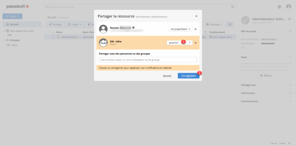 Une fois enregistrer le mot de passe sera partagé avec le groupe.