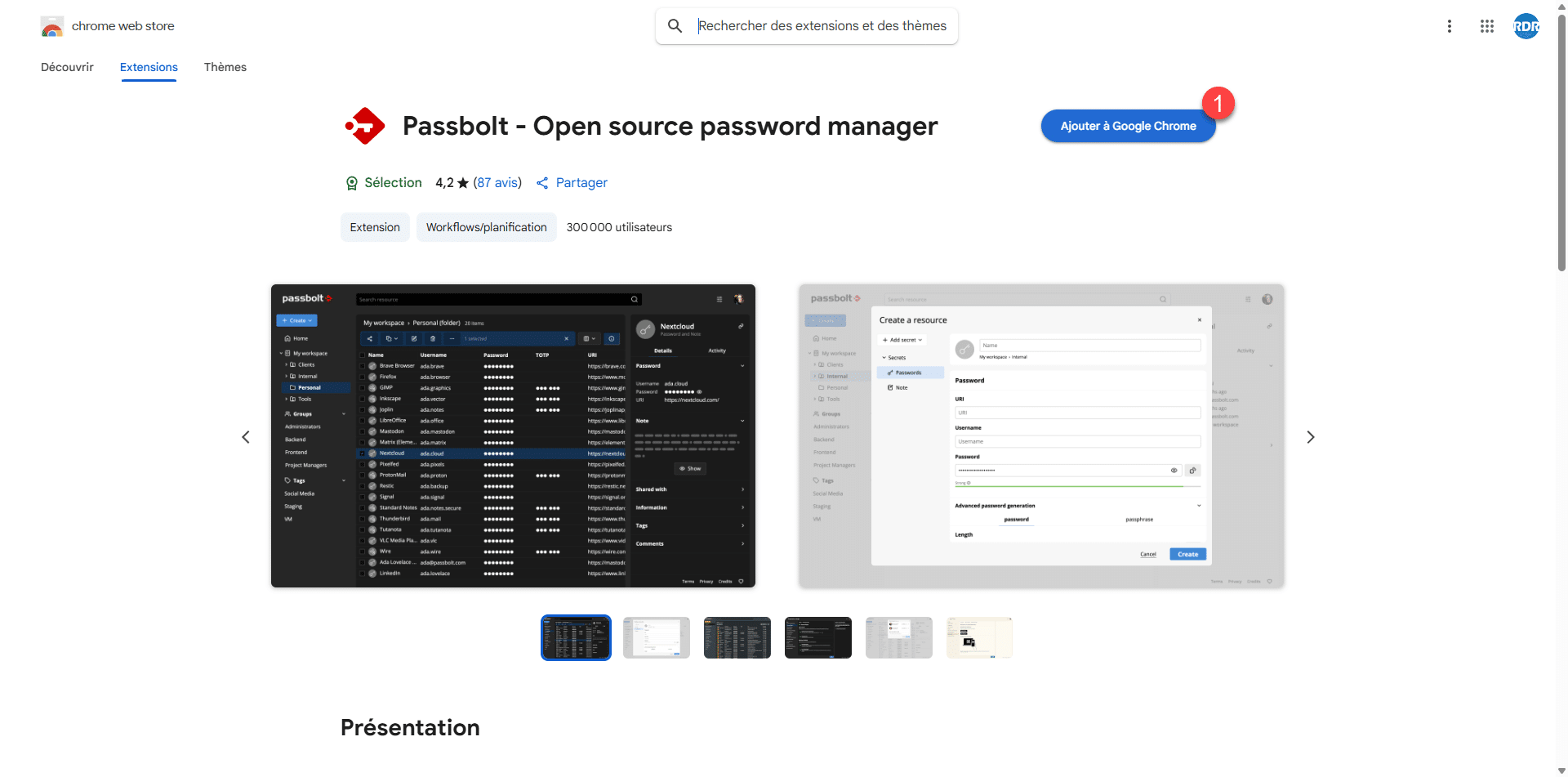 Oui sans l’extension, il n’est pas possible d’accéder à Passbolt