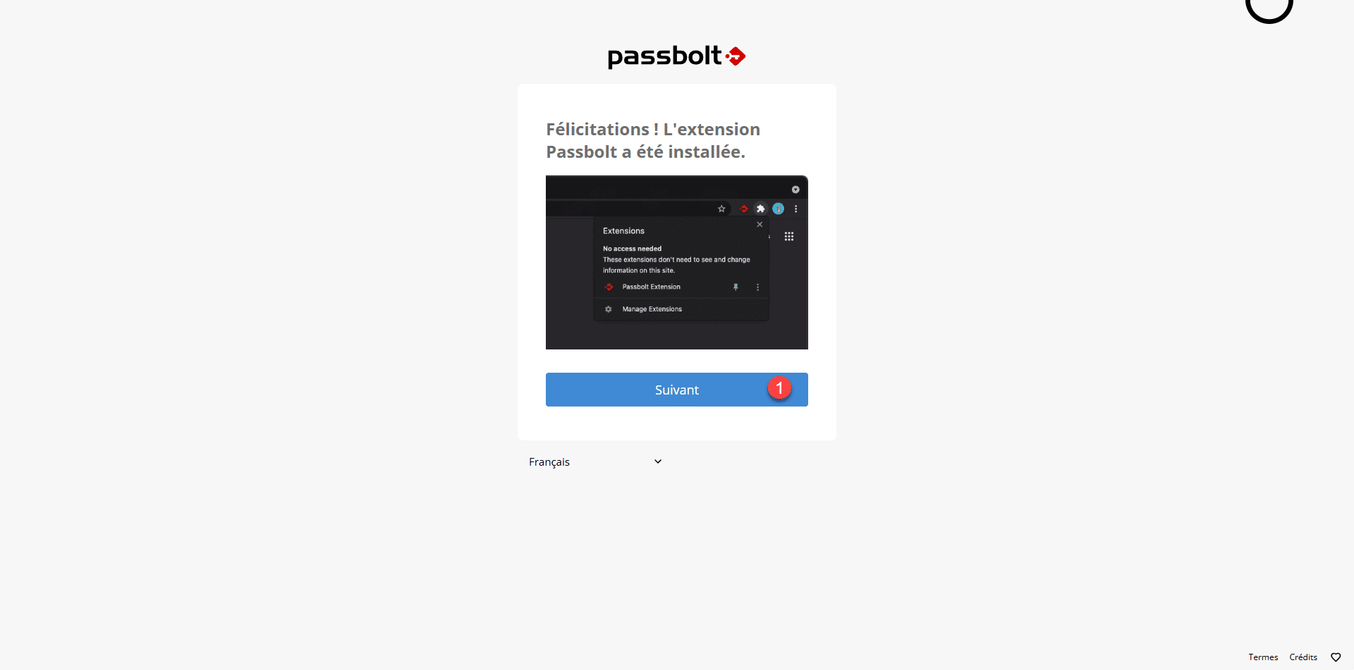 L’extension Passbolt installée, retourner le page, cliquer sur le bouton Suivant 1.