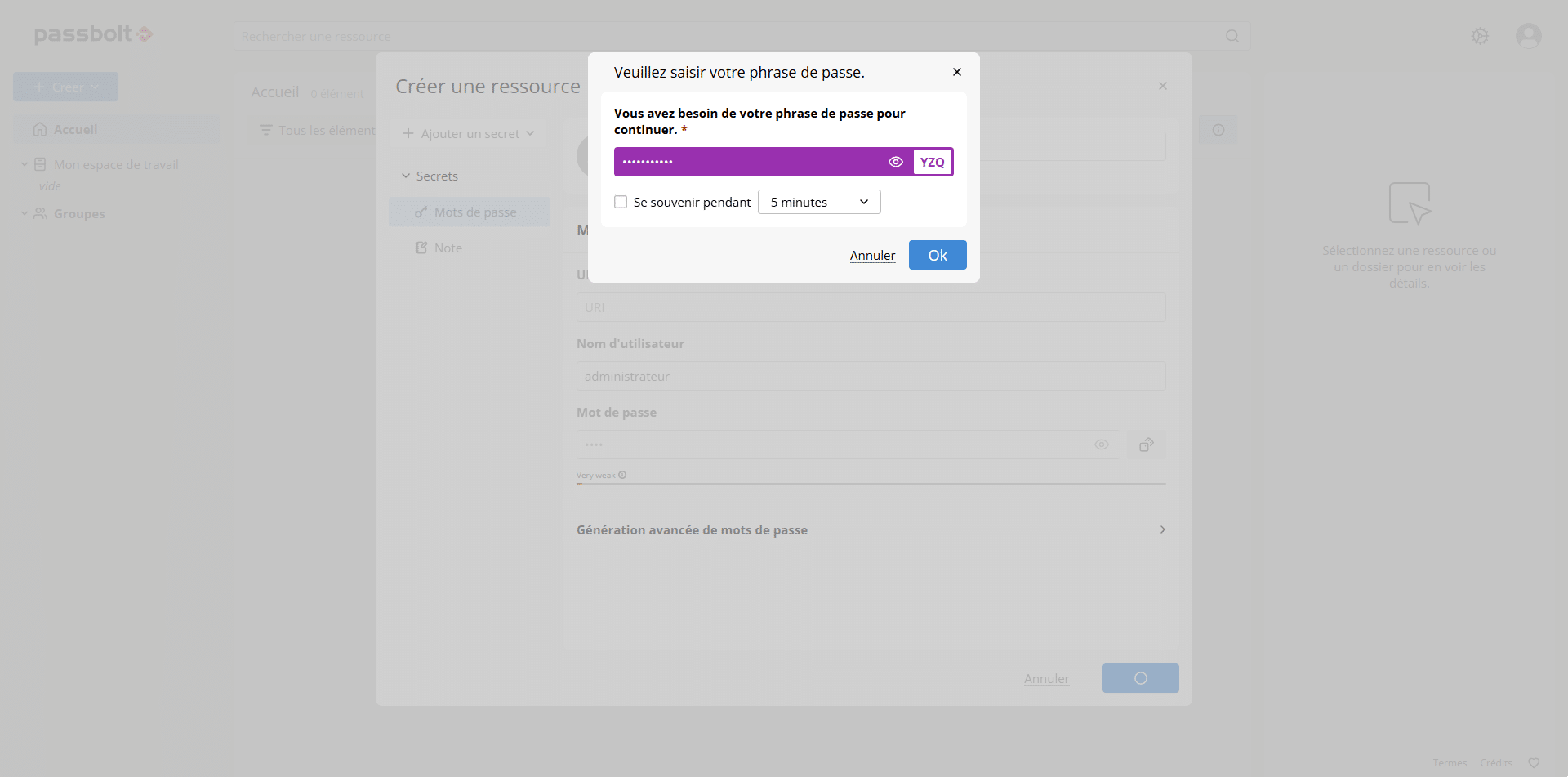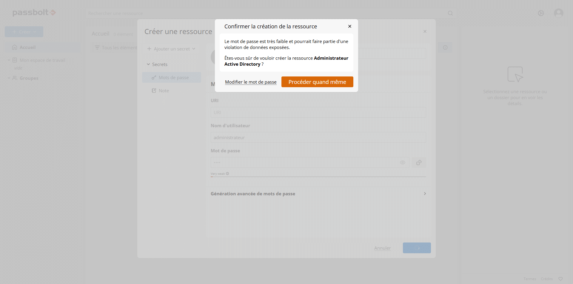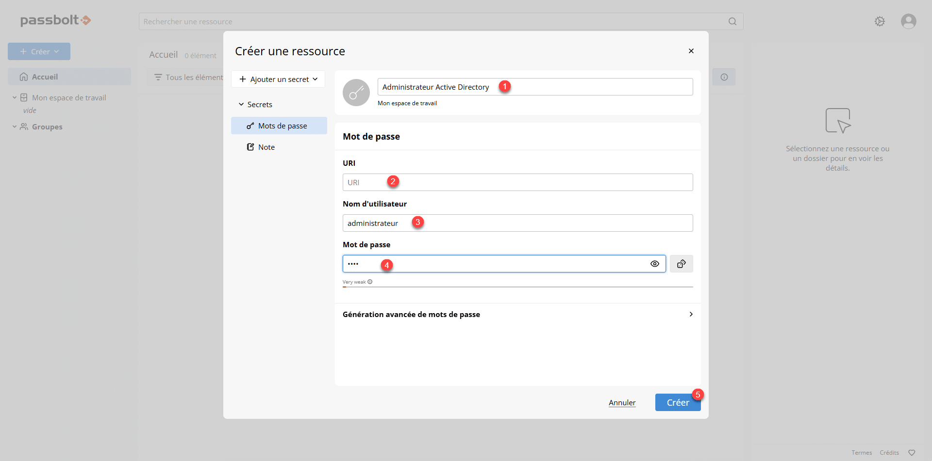 Créer un mot de passe dans Passbolt