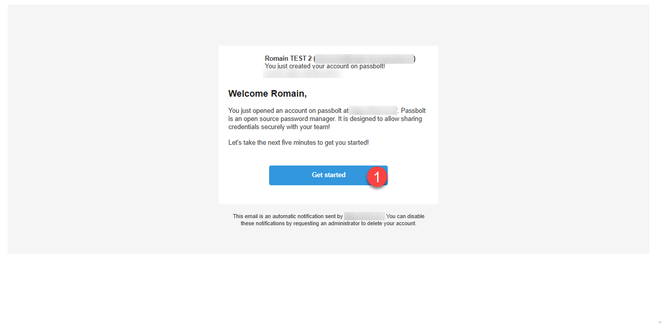 L’utilisateur reçoit un e-mail, il clique sur le lien Get started 1.