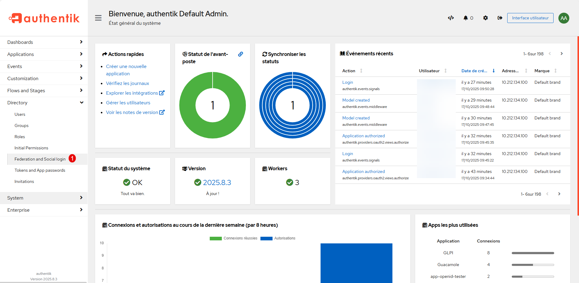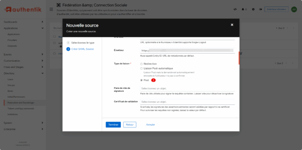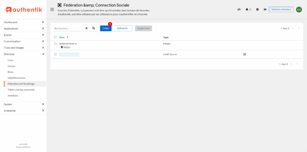 Il faut maintenant retourner sur Authentik pour ajouter le bouton de fédération sur la page d’Authentification.