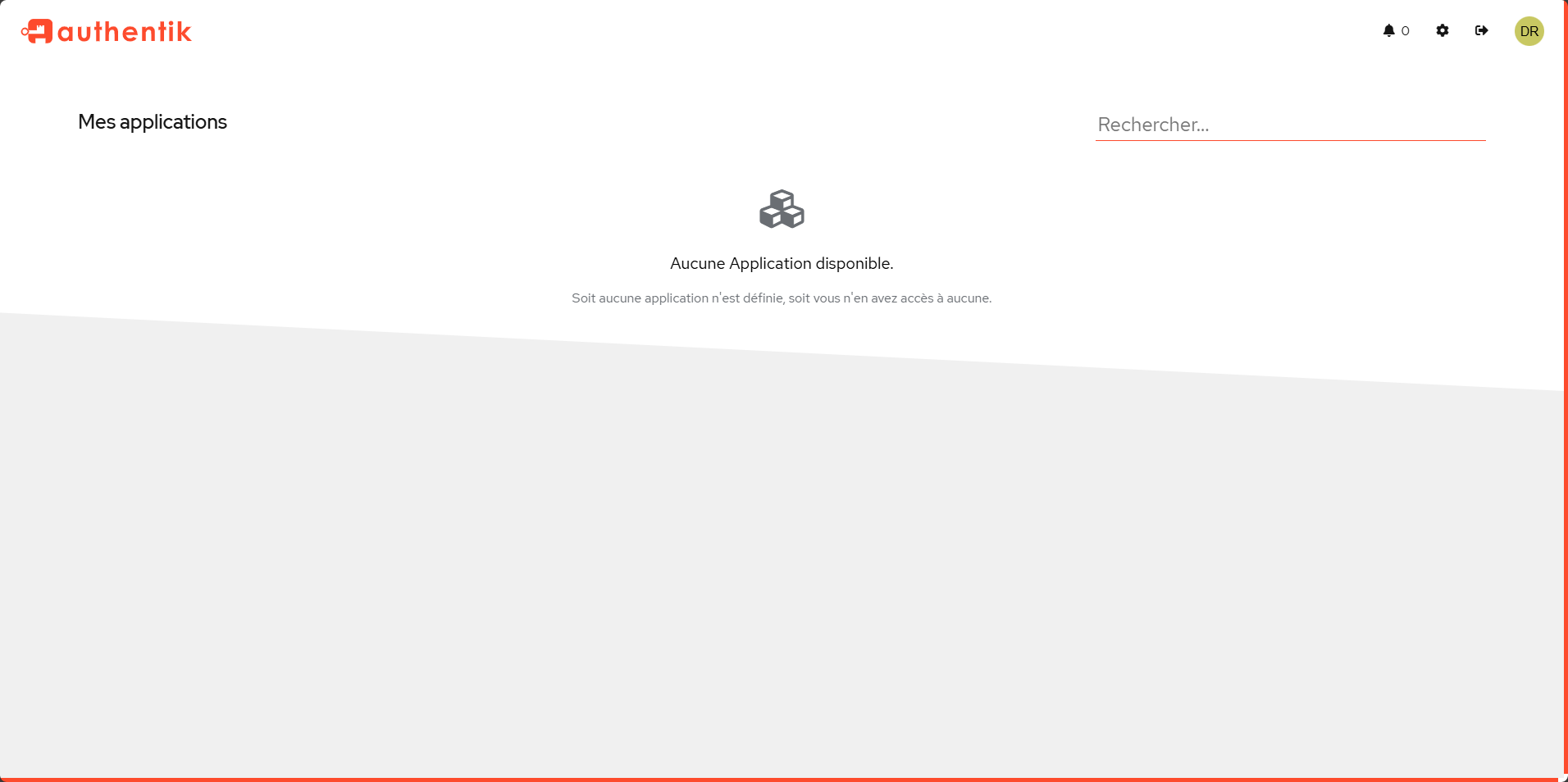 Si tout est bon, vous êtes ensuite redirigé vers la page des applications dans Authentik.
