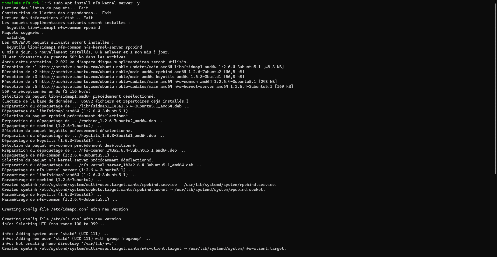 sudo systemctl restart nfs-kernel-serverInstallation et configuration des nœuds Docker