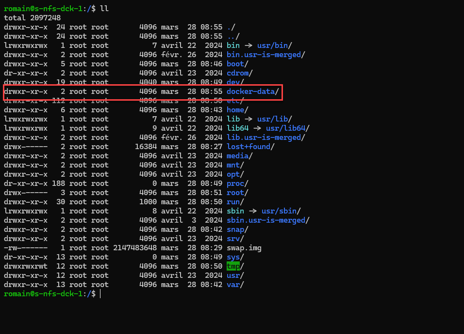 A la racine du serveur, on va créer un dossier qui va être partagé sur les serveurs Docker.