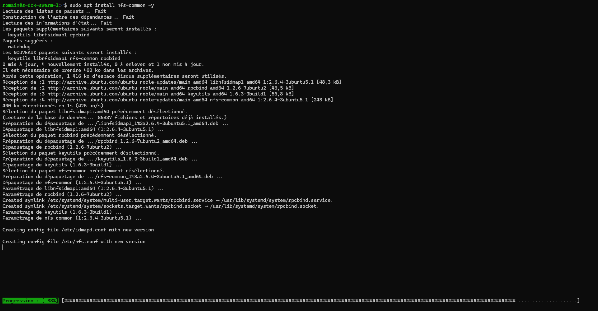 Afin de se lancer dans l’installation et la configuration de Docker pour la création du Swarm, on va commencer par configurer le serveur NFS.