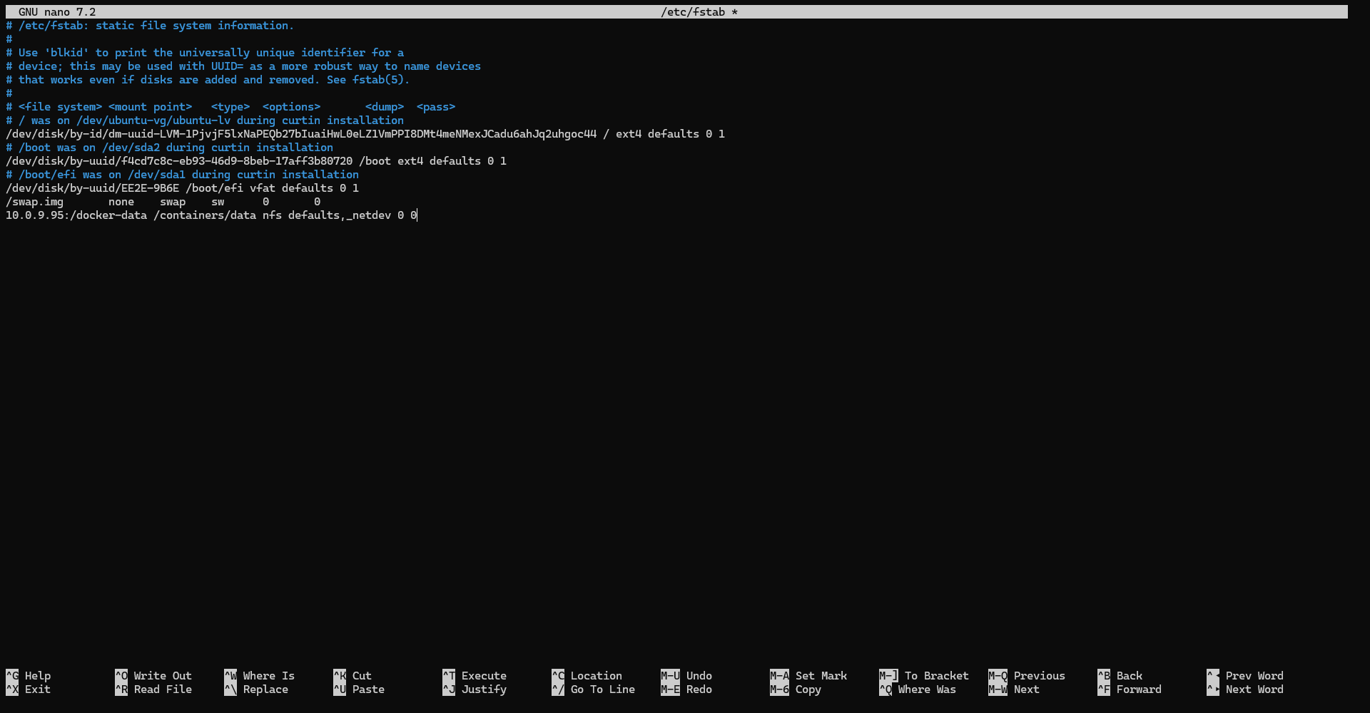 sudo nano /etc/fstabAjouter la ligne suivante :