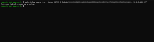 Sur chaque Worker exécuter la commande qui permet la jonction au Swarm :
