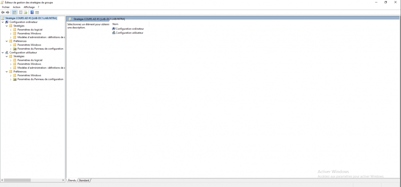 Au début de la leçon, je vous ai expliqué, l’importance du placement de la stratégie de groupe à l’OU par rapport aux paramètres de configuration qui sont activées.