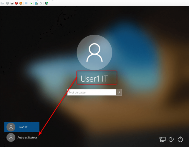 Pour se connecter à l’ordinateur après l’entrer dans le domaine, les utilisateurs devront utiliser la combinaison de touche Ctrl+Alt+Del et cliquer sur Autre utilisateur.