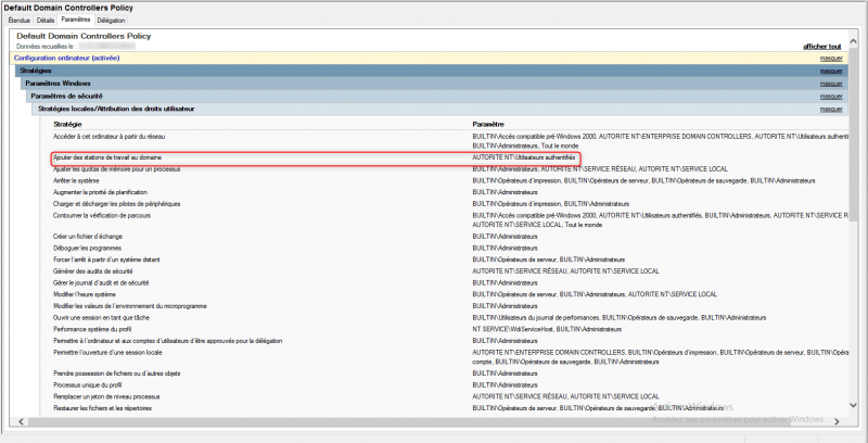 Il est possible de modifier ce paramètres en éditrant la stratégie de groupe Default Domain Controllers Policy.