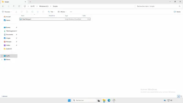 Um dieses Tutorial zu veranschaulichen, werden wir die Datei ausführen. CleanTemp.ps1 der sich im Ordner befindet C:\Skripte.