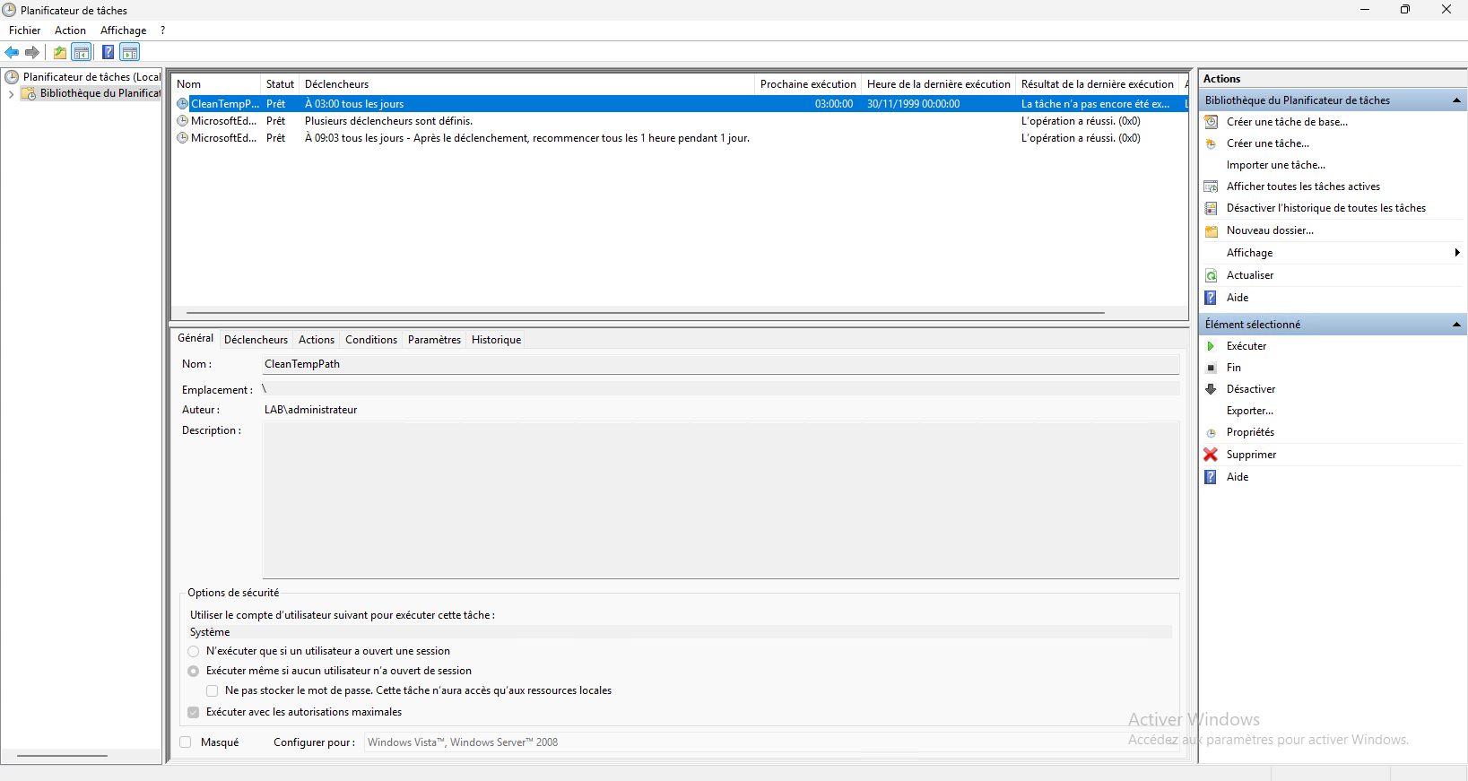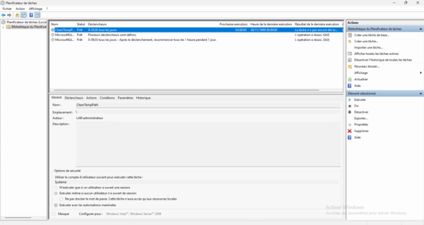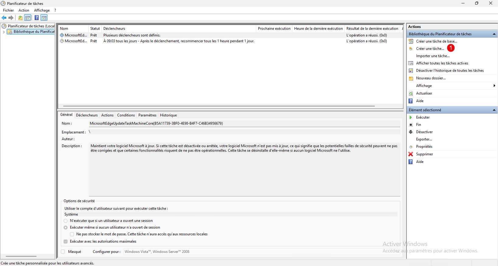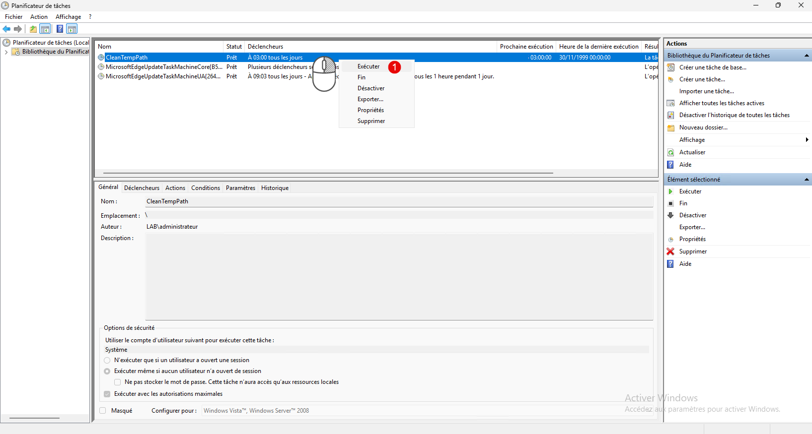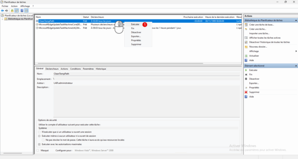 Es ist möglich, die geplante Aufgabe zu testen, ohne auf deren Auslösung zu warten; klicken Sie dazu mit der rechten Maustaste darauf und wählen Sie Ausführen 1.
