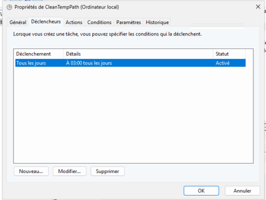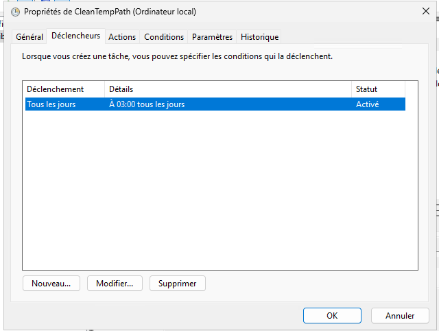 Register-ScheduledTask -TaskName "CleanTempPS" -Action $Action -Trigger $Trigger -Principal $PrincipalNach der Ausführung verwenden Sie das Cmdlet: Get-ScheduledTask -TaskName " um die Erstellung zu überprüfen.