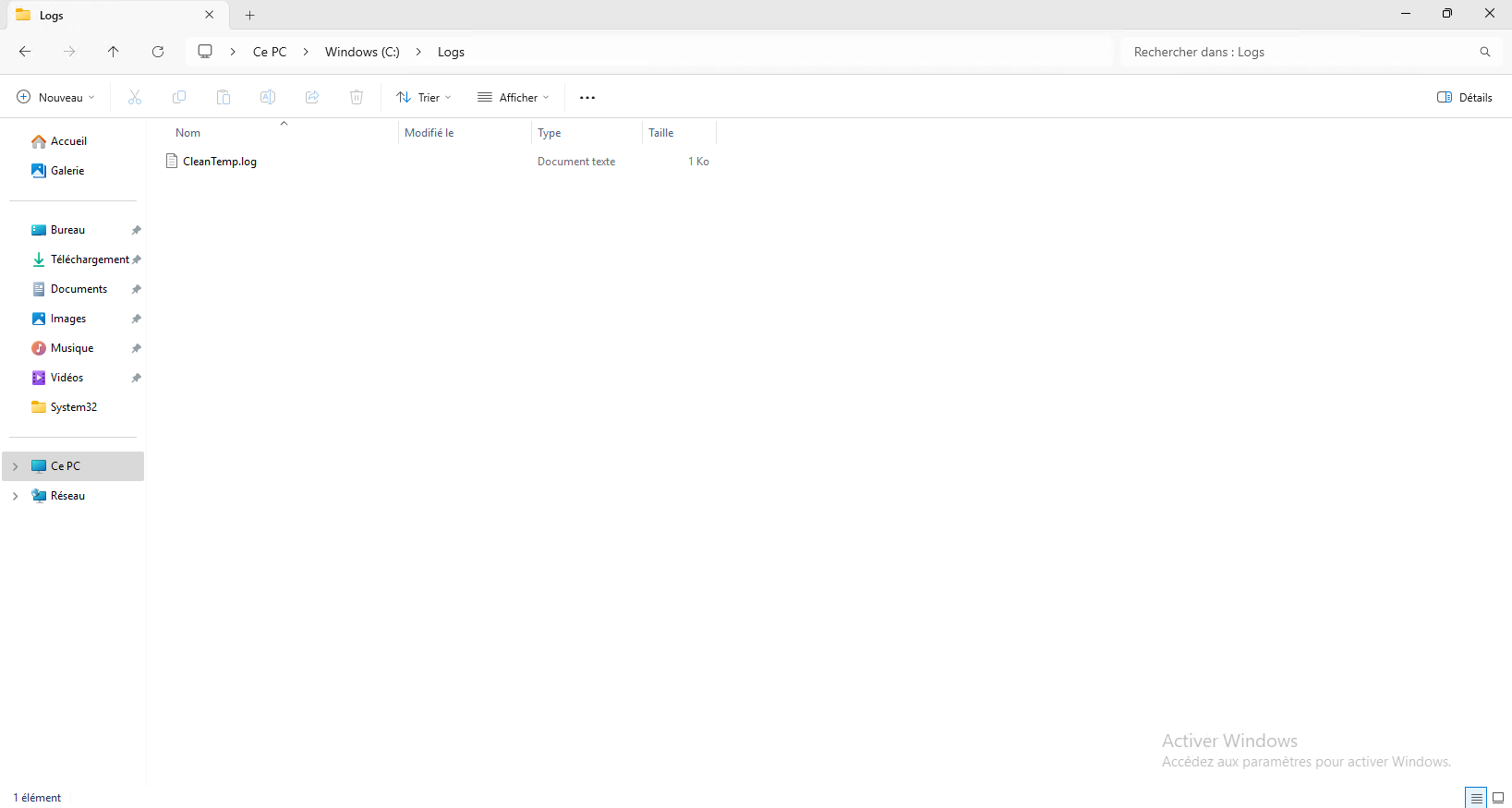 Das Skript löscht einfach die Elemente aus dem Windows-Temp-Ordner und schreibt in eine Protokolldatei.