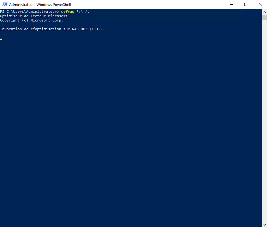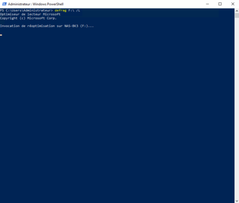 Pour résoudre ce problème, on va utiliser l’outil en ligne de commande defrag avec /L.