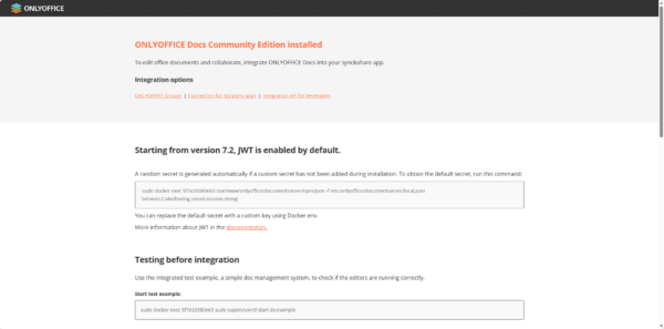 On va maintenant passer à l’intégration d’OnlyOffice, avant de se lancer dans le paramétrage de Nextcloud, on va vérifier que le conteneur OnlyOffice est fonctionnel, pour cela depuis un navigateur Internet, rendez-vous à l’URL configurée, vous devriez arriver sur la page ci-dessous :