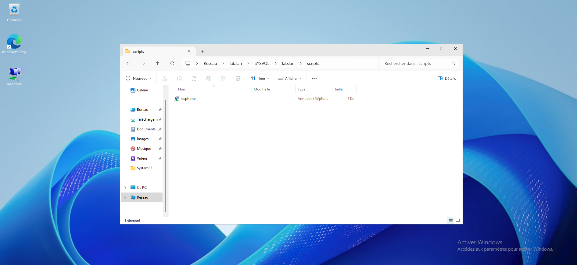 Copier ce fichier et le mettre dans un emplacement réseau disponible à tous les utilisateurs (\\domain.tld\SYSVOL\domain.tld\scripts).