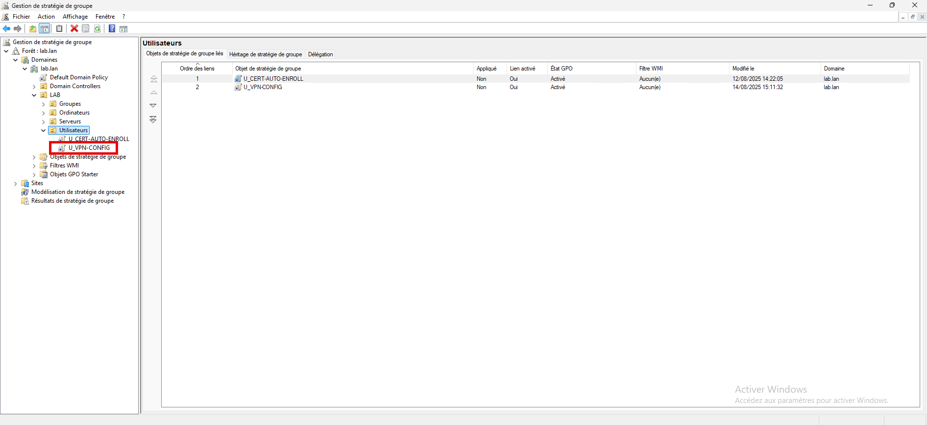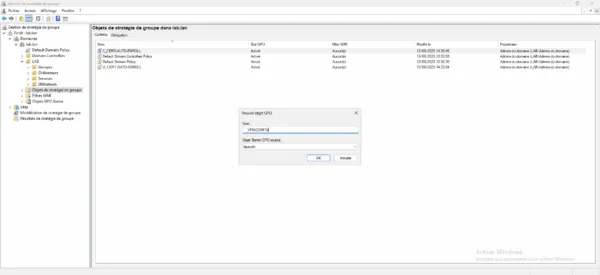 Pour finir lier l’objet GPO à l’OU afin de l’appliquer aux utilisateurs.
