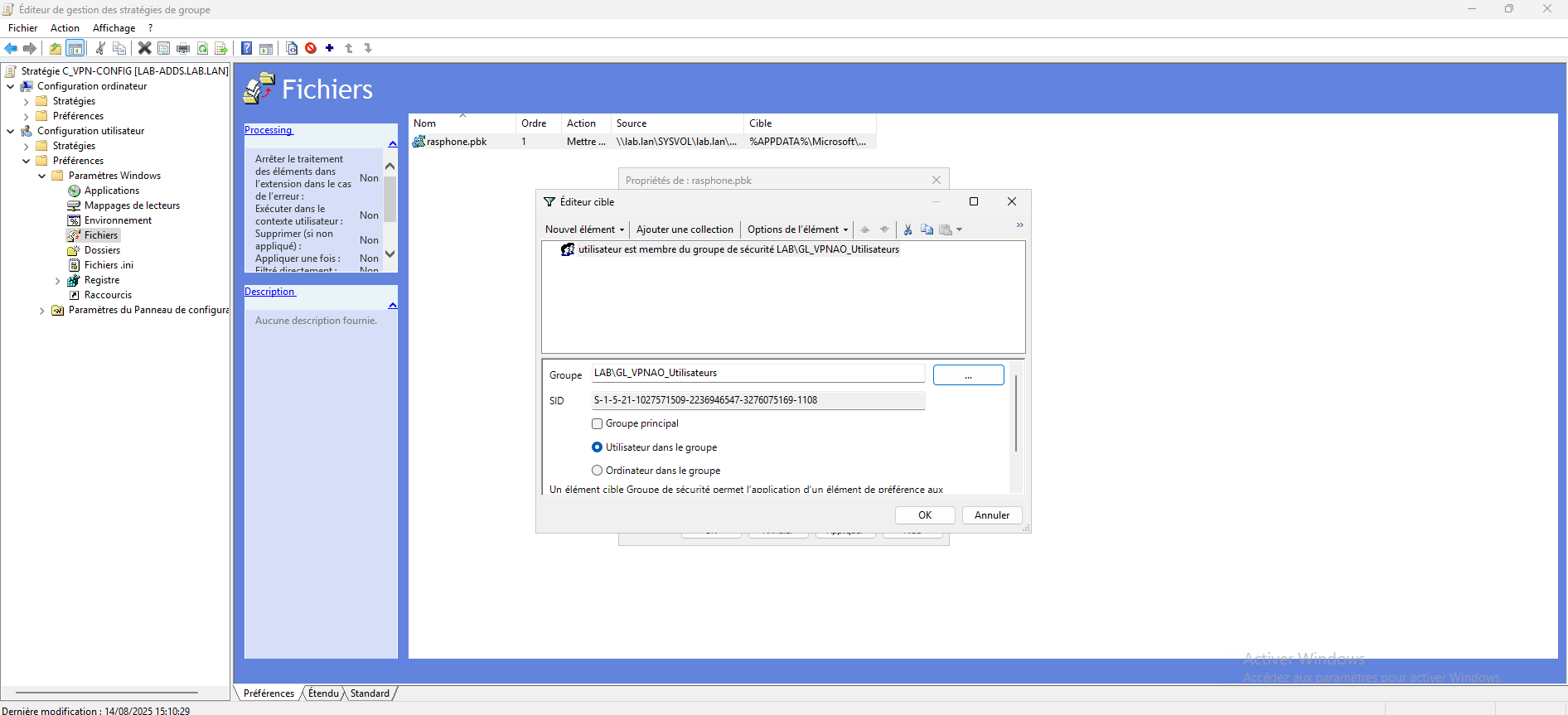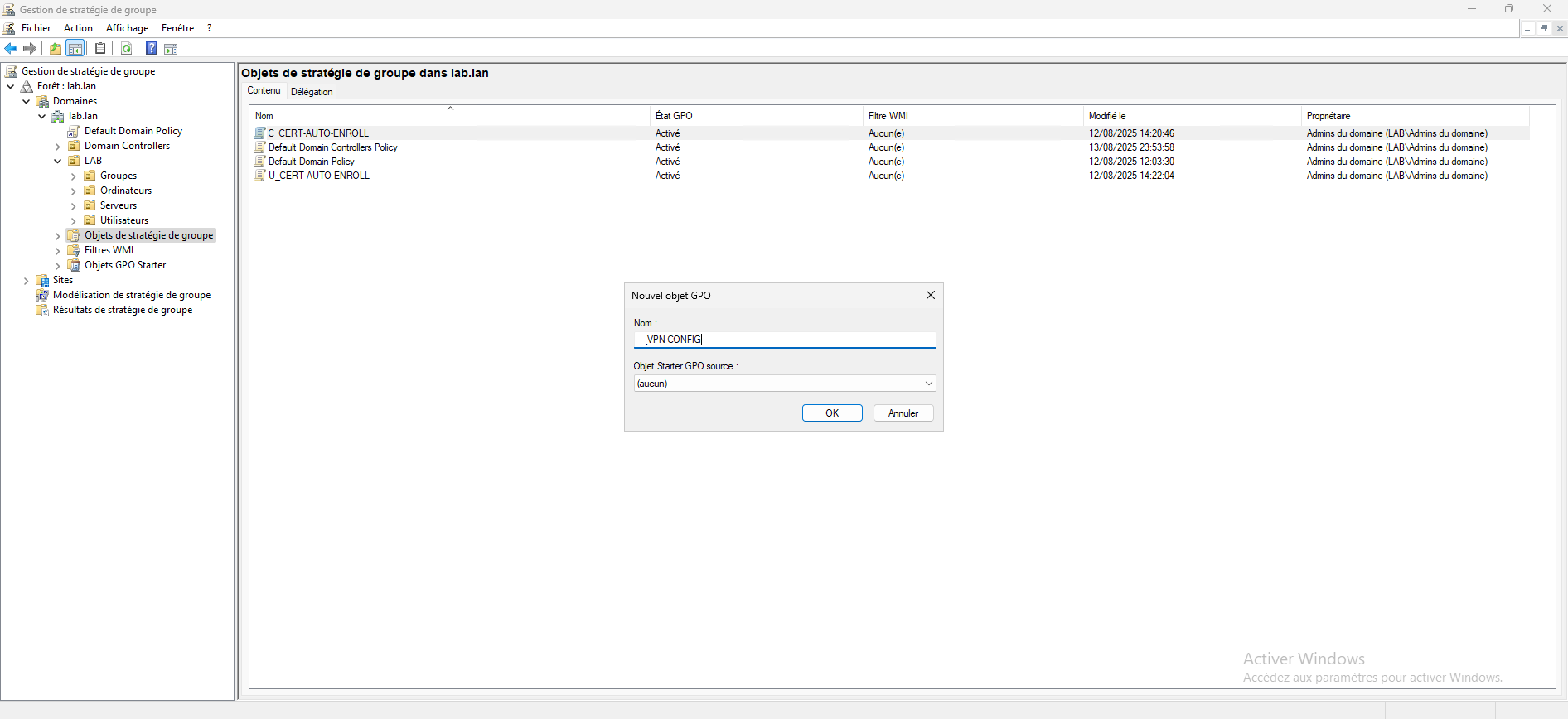 Créer et configurer une stratégie de groupe pour la déploiement de la configuration VPN