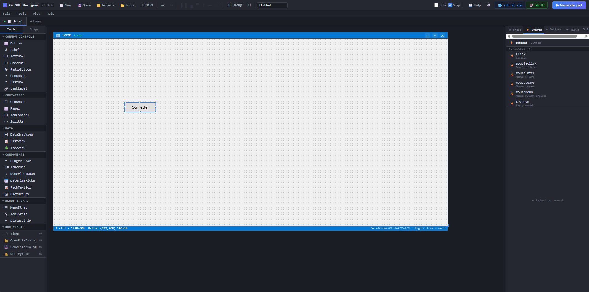 With PowerShell GUI Builder, you can quickly design your interface and get a ready-to-use PowerShell code.