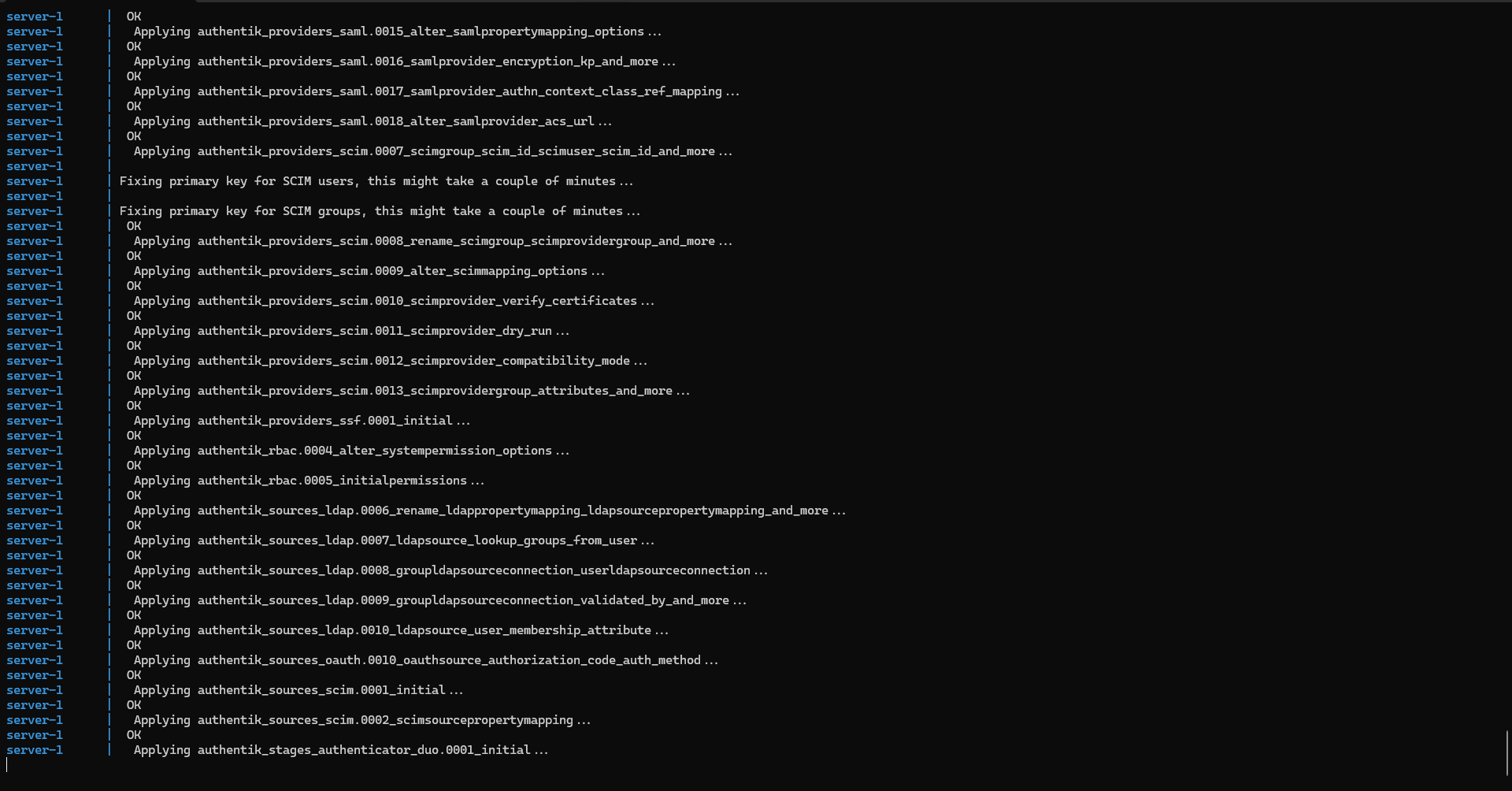 For my part, I will work on the file: /containers/authentik/.