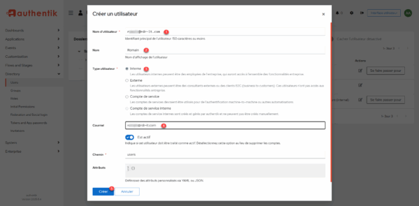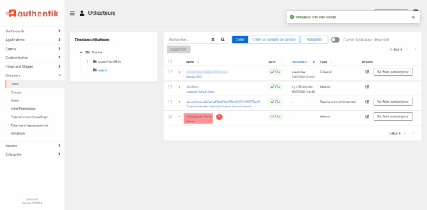 There are different solutions to manage users in Authentik, we will start with the basic solution, which will be to create a new user directly in the IdP.