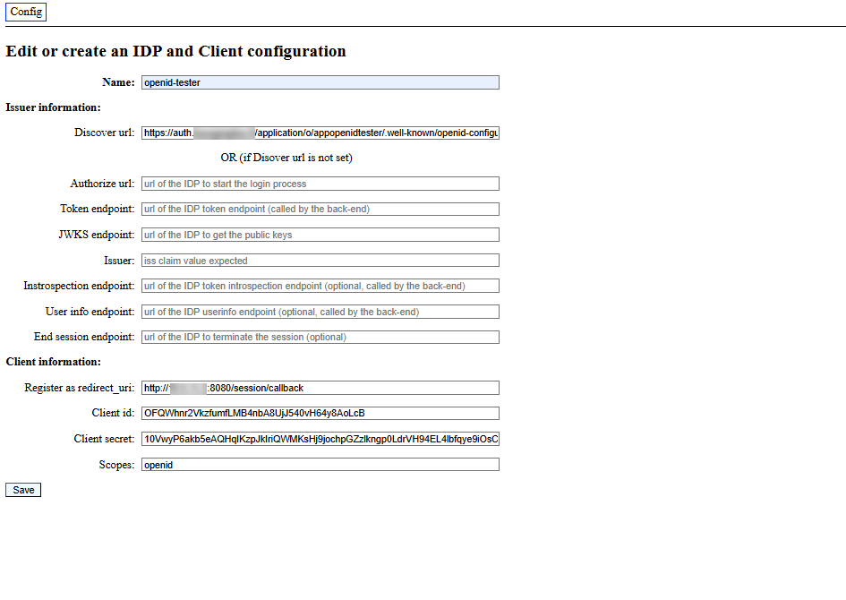 Here’s the configuration of openid-tester, I’m not going to go into detail because it’s no use.