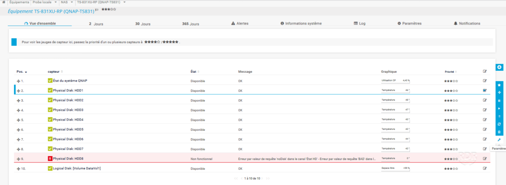 Supervision of the QNAP NAS