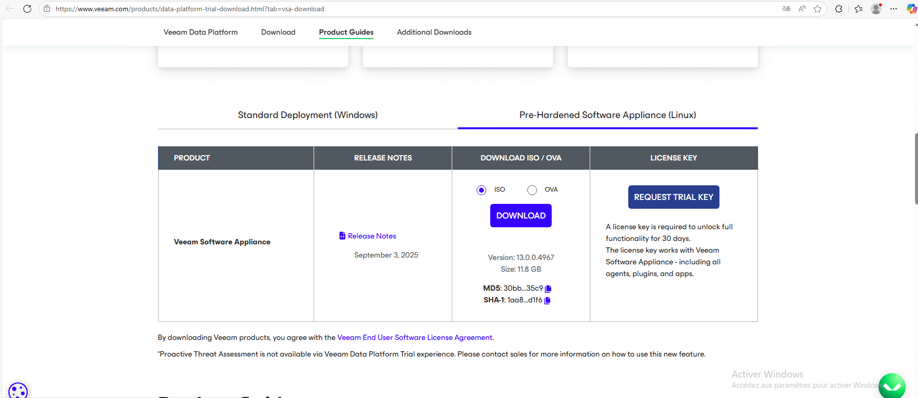 From the site of Veeam, Start by downloading the Veeam 13 ISO or OVA file.