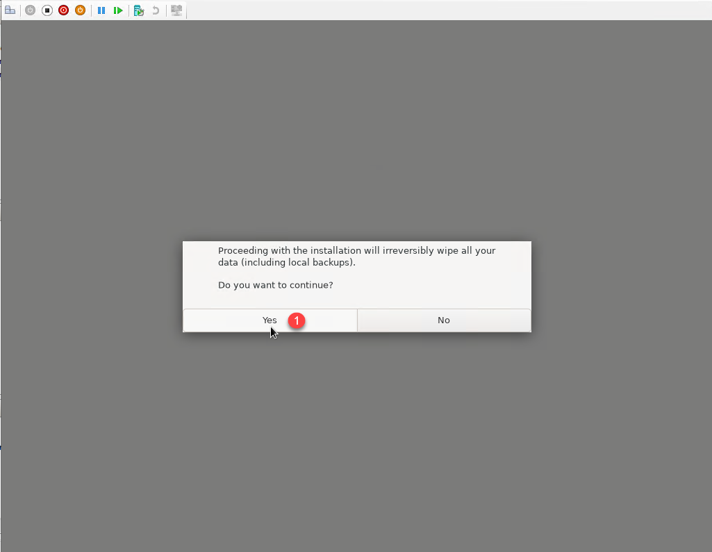At the end of the loading, before launching the installation wizard, a warning message appears indicating that all data will be erased, click Yes 1.