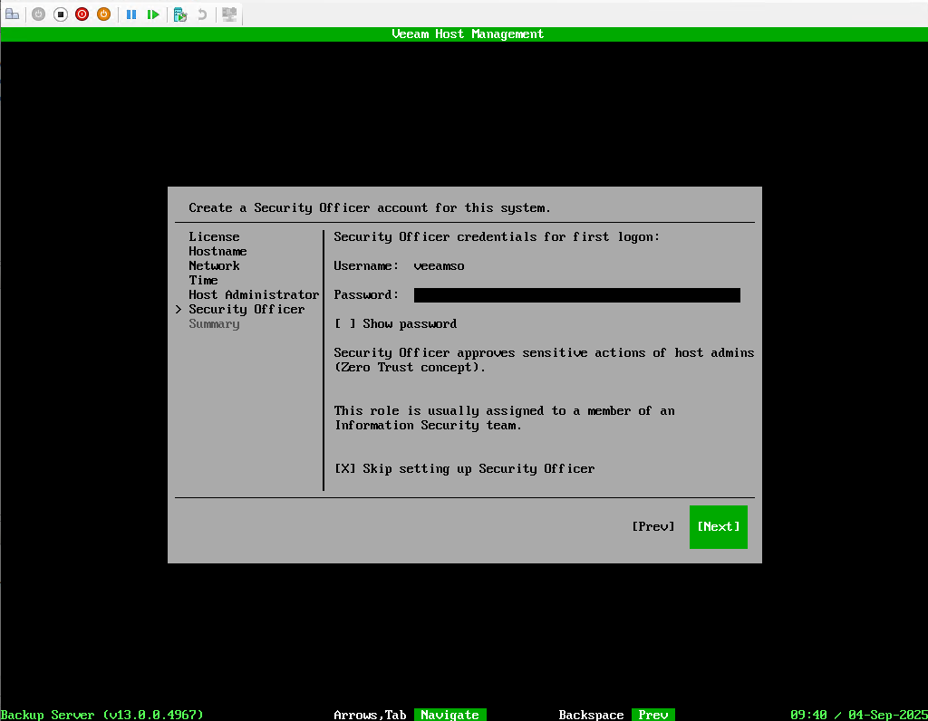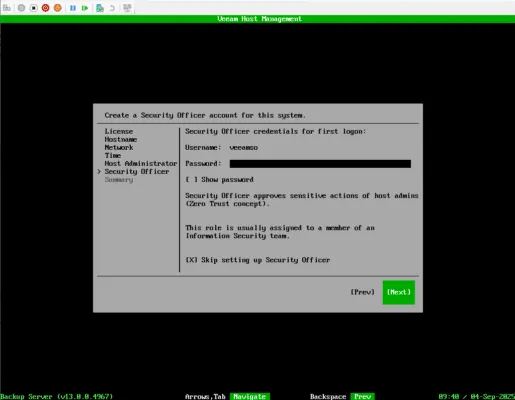 As for the veeamso account, I passed it by checking the Skip setting up Security Officer.