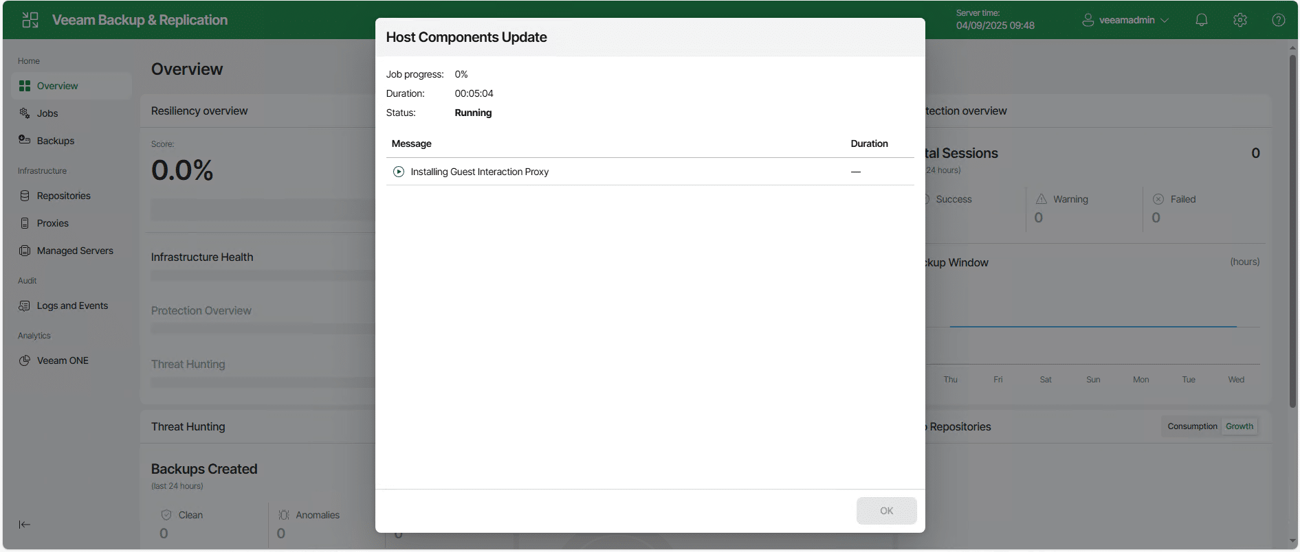The improved Instant Recovery engine offers up to 50% higher I/O throughput, more efficient bulk VM restores, and support for IDE, SATA, and NVMe disks. Linux backup proxies now deliver better NFS v3 performance via multi-TCP connections, with backup speeds increased by approximately 25%.
