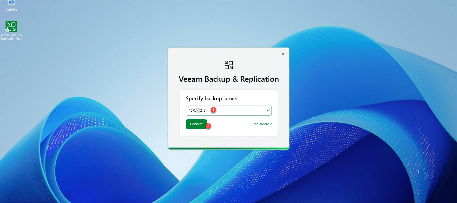 From a web browser, in the address bar enter the FQDN name of the server or its IP address in HTTPS, enter the login information of the veeamadmin account.