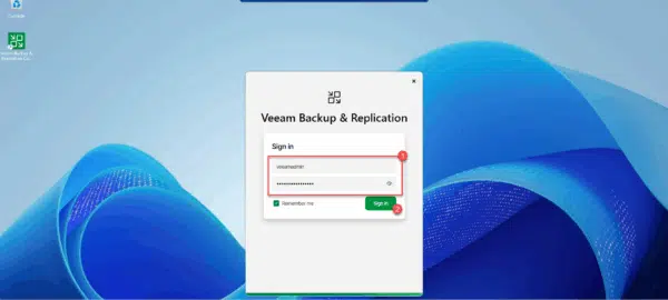 Enter the veeamadmin account credentials 1 and click Sign in 2.