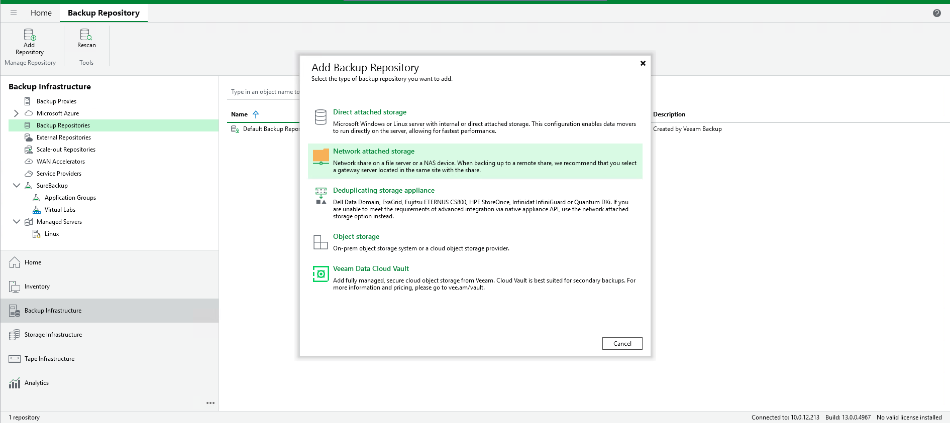 If you are using third-party cloud storage services, you should verify that they support Veeam 13.