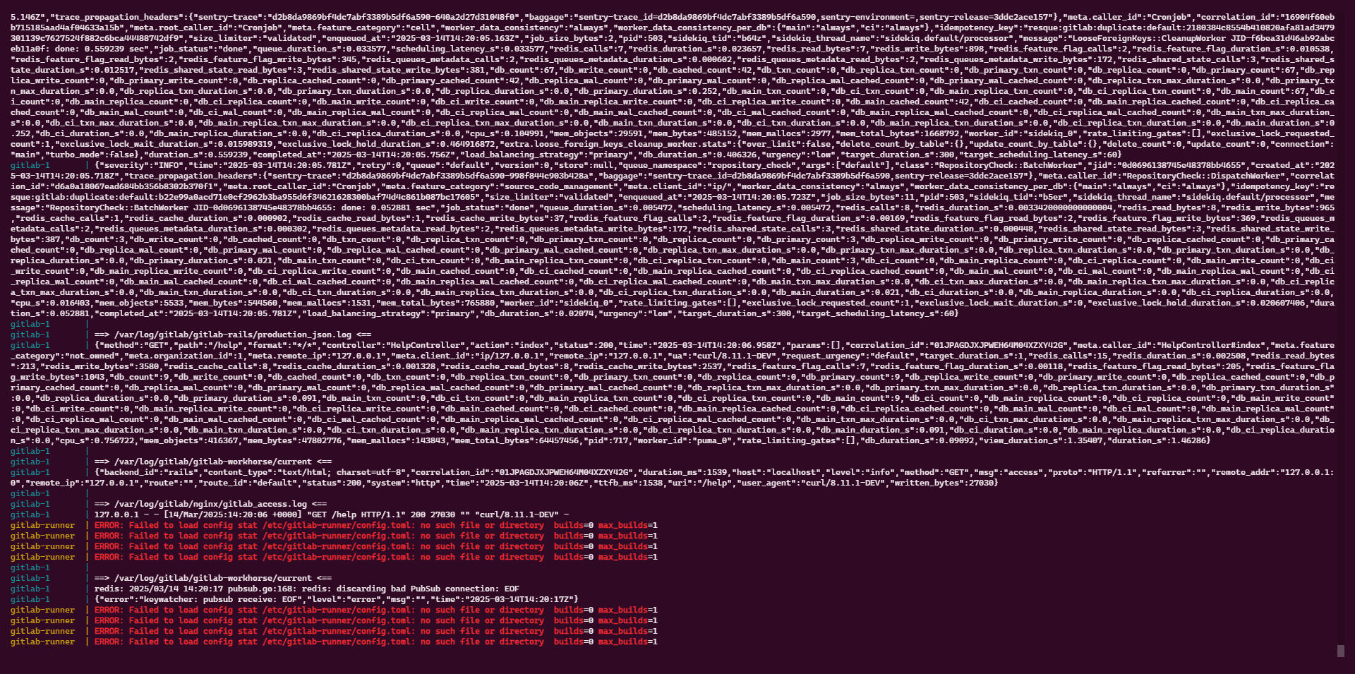 sudo docker compose down && sudo docker compose up -dSi on regarde dans les logs avec le commande sudo docker compose logs -f on peut voir des erreurs au niveau du Runner ce qui est normal car celui-ci n’est pas encore configuré.