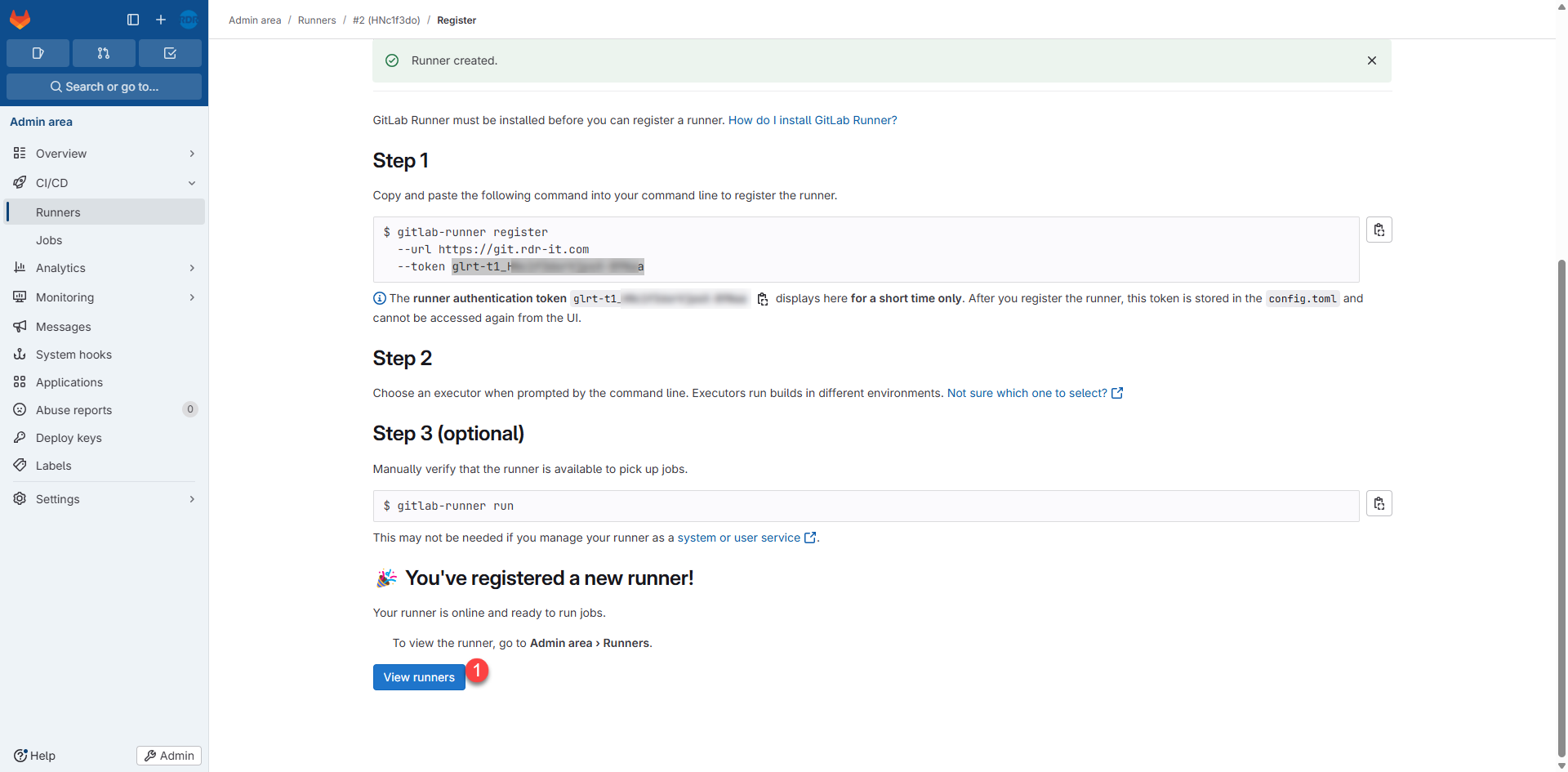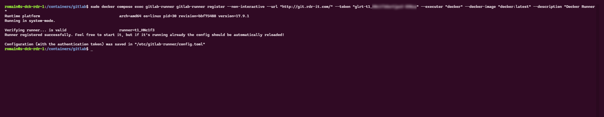 Cette commande va aussi créer le fichier de configuration du Runner config.toml