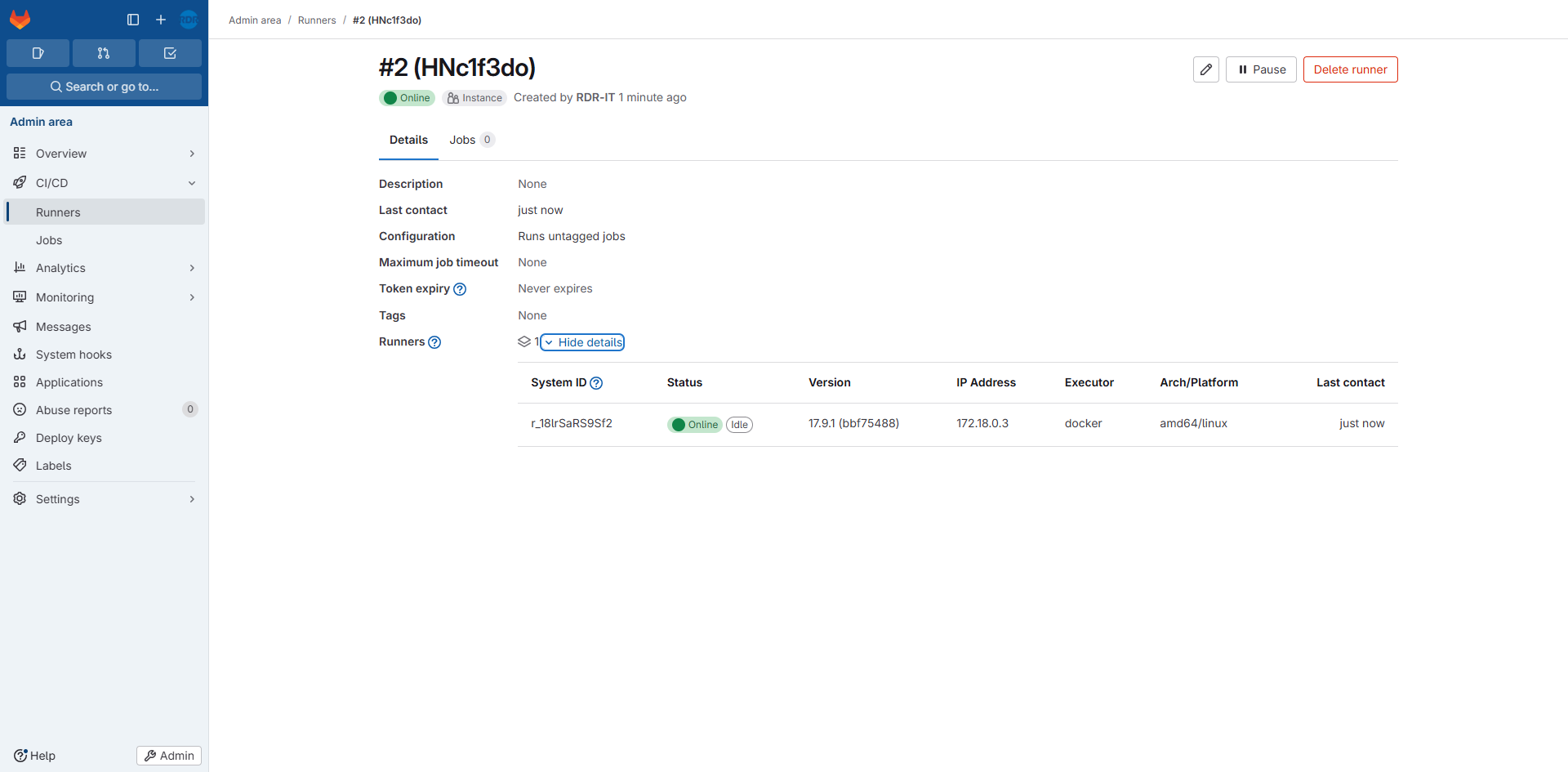 sudo docker compose restart gitlab-runnerNous en avons terminé avec la configuration du Runner.